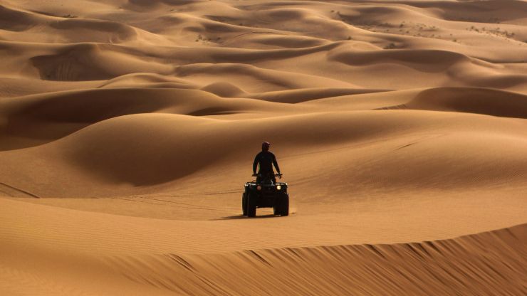 Within minutes, you’re climbing your first dune — the “adrenaline-fuelled ride through the desert” promised to you. The wind whips through your hair, the golden sands fly past and you experience the incredible rush that seasoned riders describe.